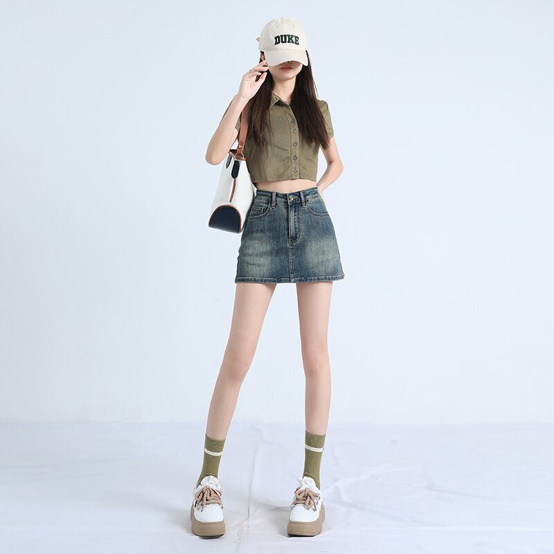 ギャルハイウエスト レトロデニムスカート レディース2023夏新作 スリムハーフスカートヒップスカート51