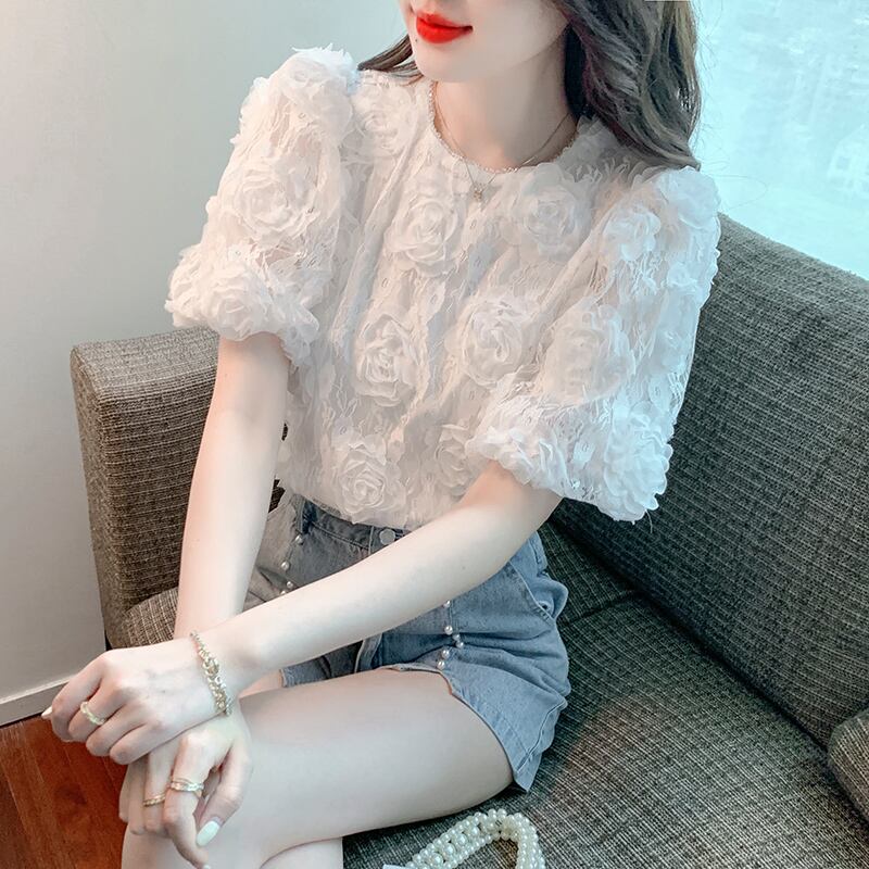 新しい季節にぴったりな、リアルショットストック2023年夏韓国新作フレンチレトロラウンドネックジャカードカジュアルレーストップが登場です!この魅力的なトップスは、華やかなジャカードデザインとレトロな雰囲気が特徴で、特別なシーンからカジュアルなお出かけまで幅広くご活用いただける一品です。