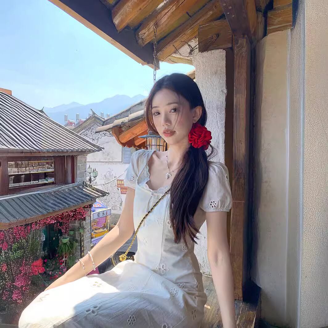 新しい季節にぴったりな、レトロな透かし彫りの刺繍が施された半袖ワンピースが登場です!この女性の春夏向けのワンピースは、フランス式のロマンチックなデザインと、高い腰ラインが特徴で、初恋を思い起こさせる魅力的なアイテムです。