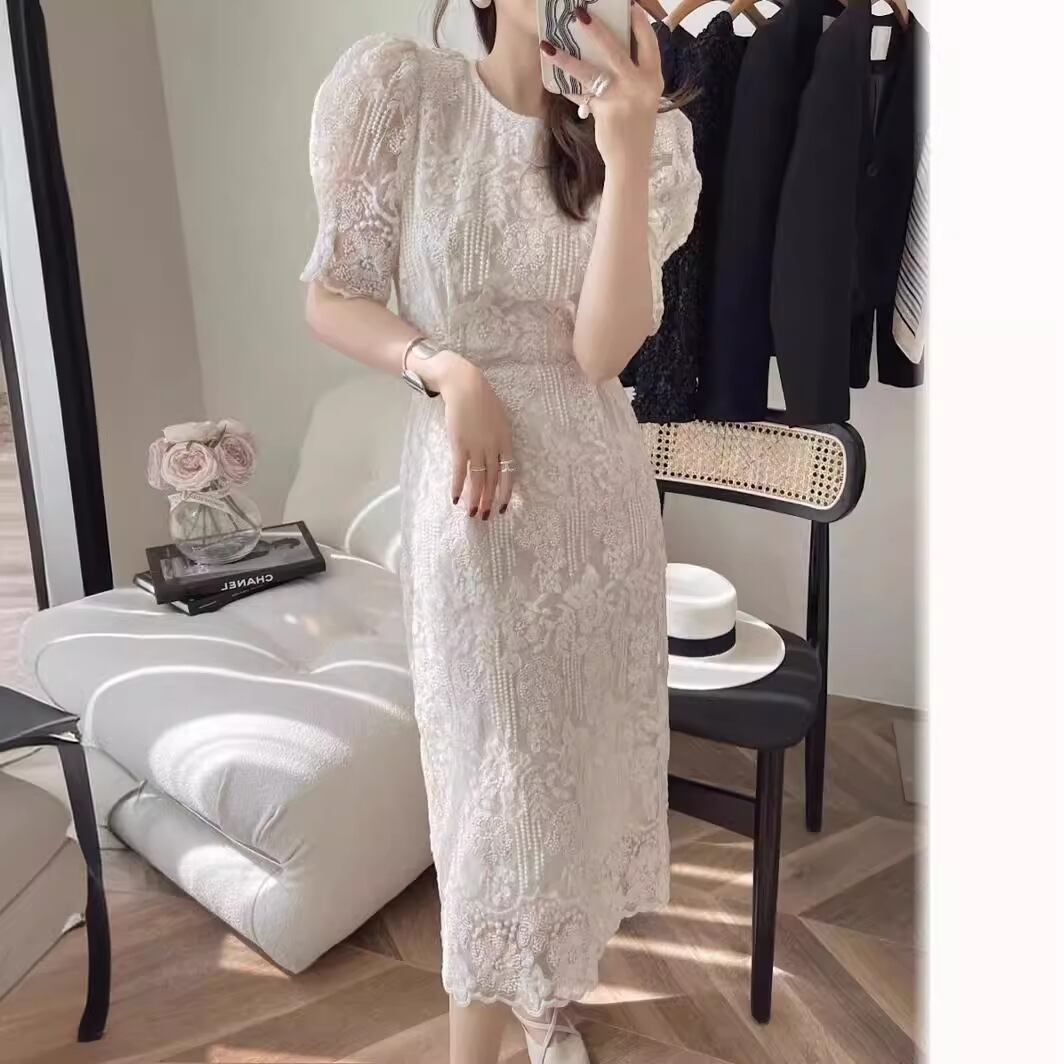 フランス風の気質のレースのワンピースの女性の2024夏の新型の泡の袖の設計は 長いスカート105