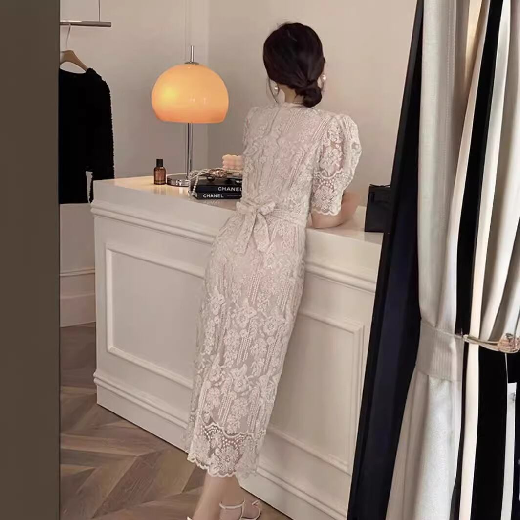 新しい季節にぴったりな、フランス風のレースのワンピースが登場です!この魅力的なアイテムは、泡の袖のデザインと長いスカートが特徴で、エレガントさと女性らしさを兼ね備えた服装をお求めの方に最適です。カジュアルなお出かけから特別なイベントまで幅広くお使いいただけるアイテムです。