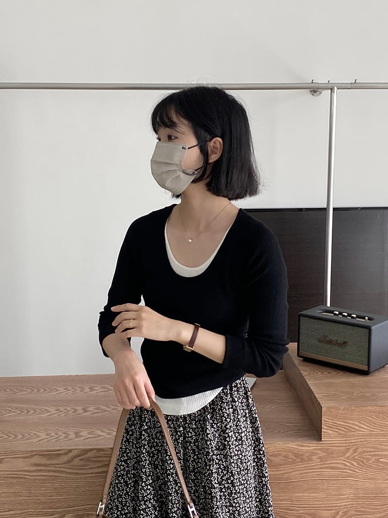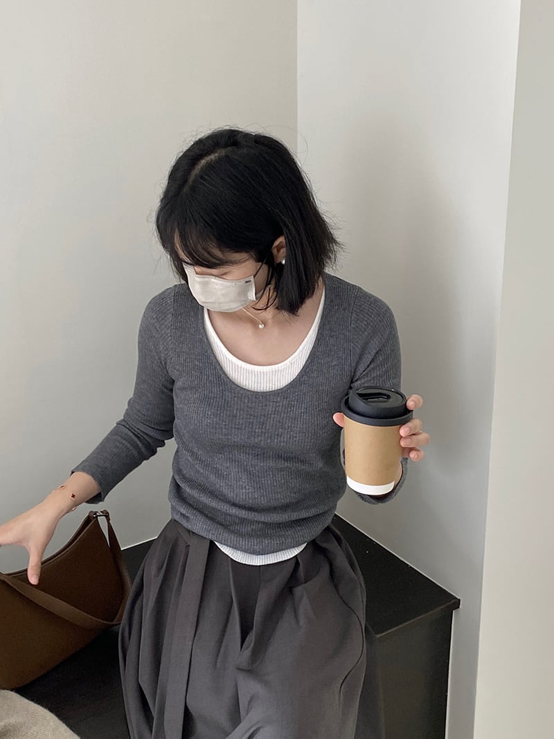 レディース 秋 スリム 伸縮性 インナートップ U625フェイクツーピース ウールセーター118