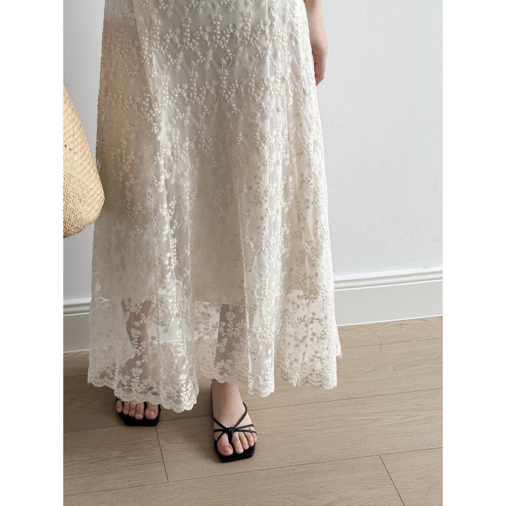 フランス式レースストラップワンピース女性夏の新型高級感刺繍ロングスカート120
