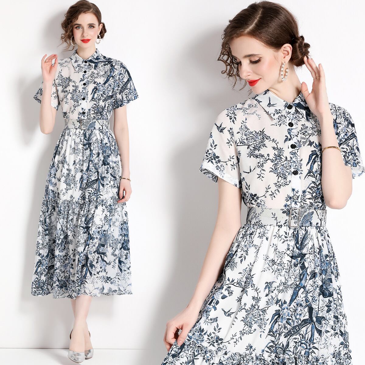 2023年夏ファッションショー新型中長サイズプリント半袖シャツワンピース135