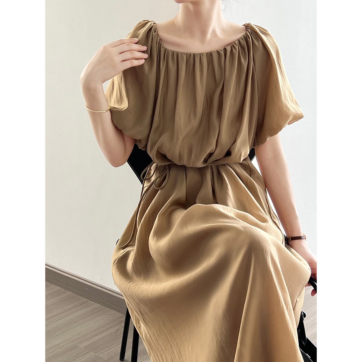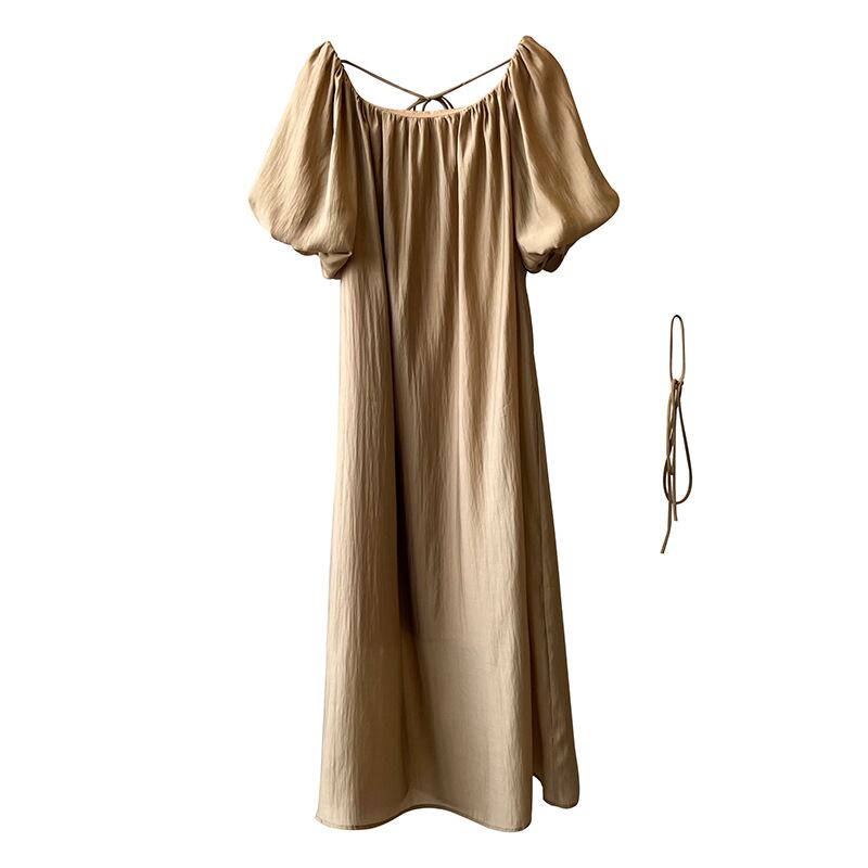 このワンピースは、優雅な泡袖デザインが女性らしさを強調し、着るだけで特別感を演出します!ストラップデザインが絶妙で、気軽に着こなせるのが嬉しいポイントです。ロングスカートは、動きやすさも考慮されており、涼しさを感じさせるスタイルです。
