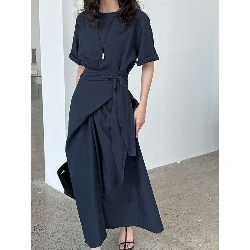 デザインクロスバンド半袖ワンピース夏の新型ロングスカート165
