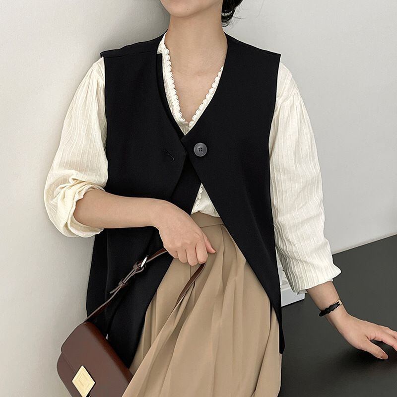 このベストは、洗練されたフォルムとディテールへのこだわりが光り、着るたびに自信を与えてくれるアイテムです。秋の季節にぴったりな重ね着スタイルを楽しむことができ、様々なコーディネートに対応します!