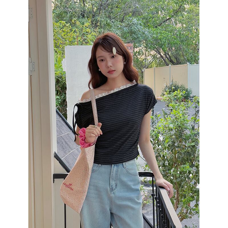 新しいシーズンにぴったりな、【南仏イメージ】歌铭レトロレース斜めがけ半袖ストライプtシャツ夏ショート丈トップスが登場です!このアイテムは、レトロでありながらもトレンド感溢れるデザインと、驚くほどの快適さを兼ね備えた一着で、特別なお出かけからカジュアルなおしゃれまで幅広くご利用いただけます。