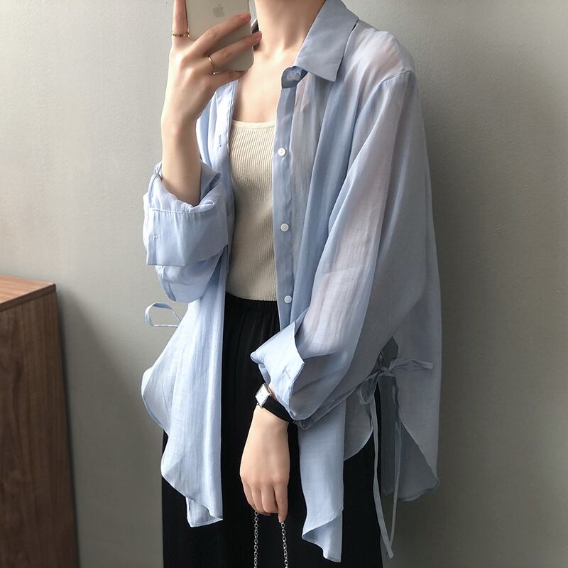 ダブルバンドのデザイン感のあるシャツの女性2024夏の新型韓国版シャツの軽薄でゆったりした日焼け止め服238