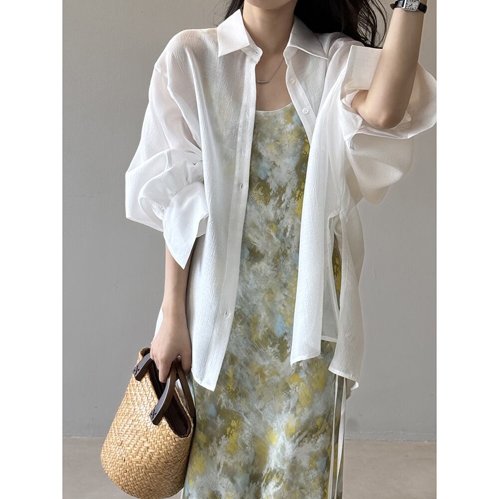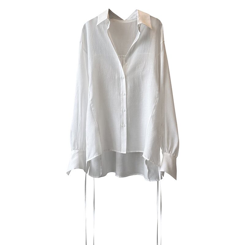 日焼け止めシャツ女性の夏のシンプルでゆったりしたストラップ付きのシングルボタンの上着299