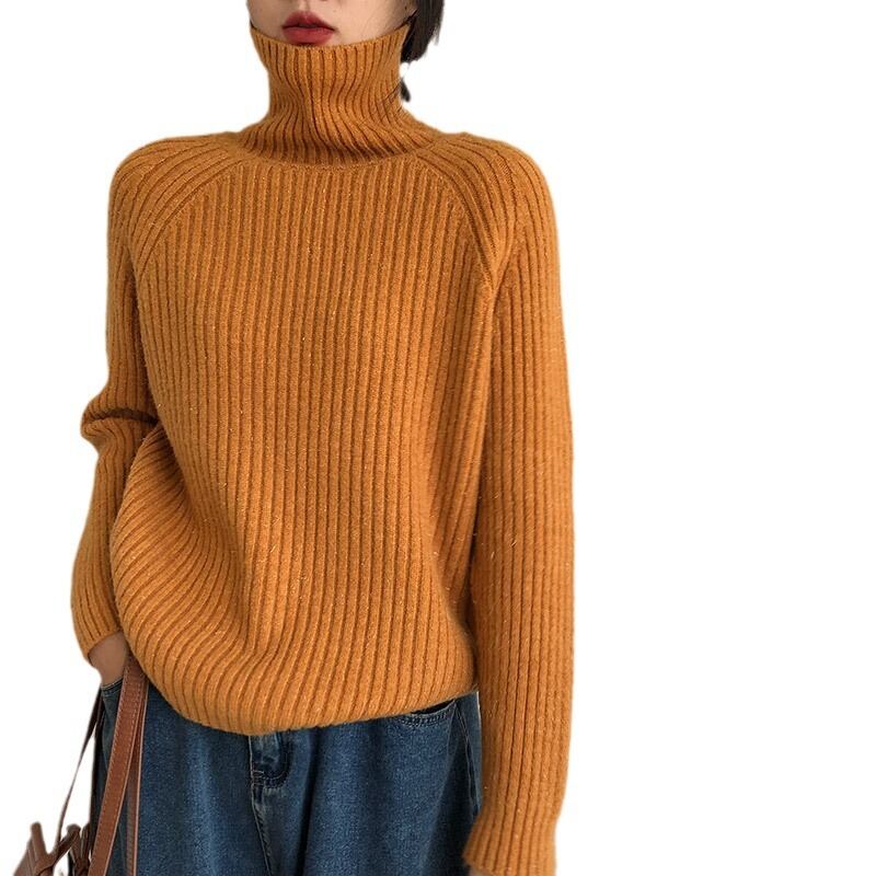 秋冬の新型韓国版セーター女性の高襟純色のプルオーバーがゆったり305
