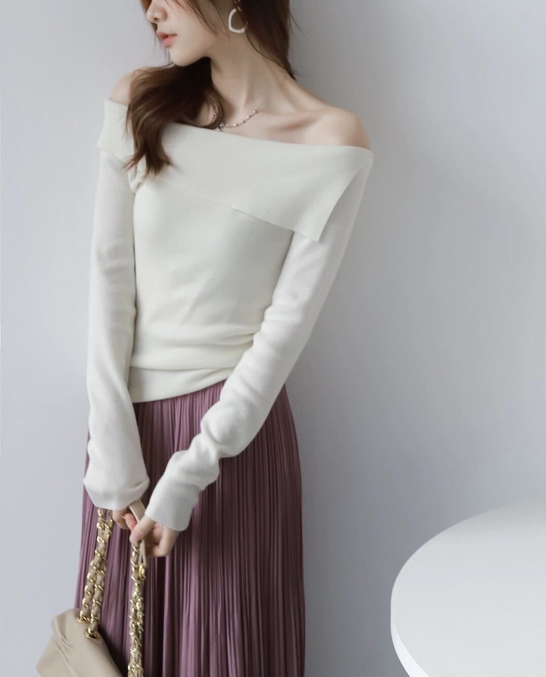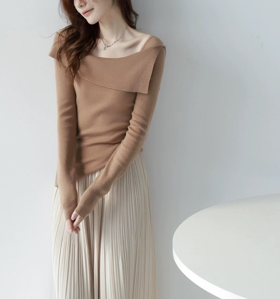 デザインカーディガン秋新作ワンショルダーデザイントップスレディースフレンチゆったり長袖セーター308