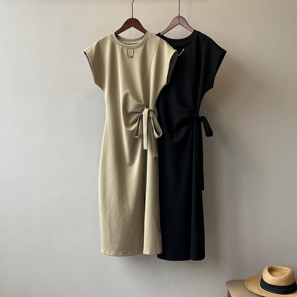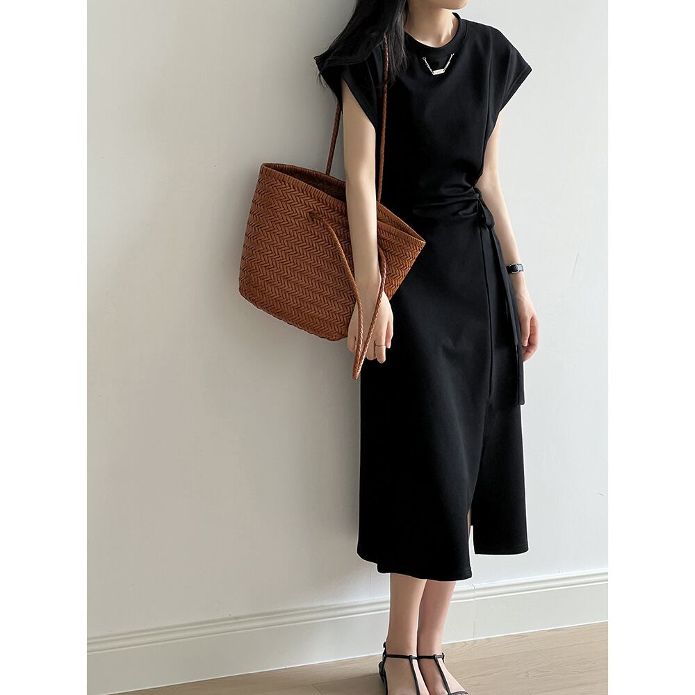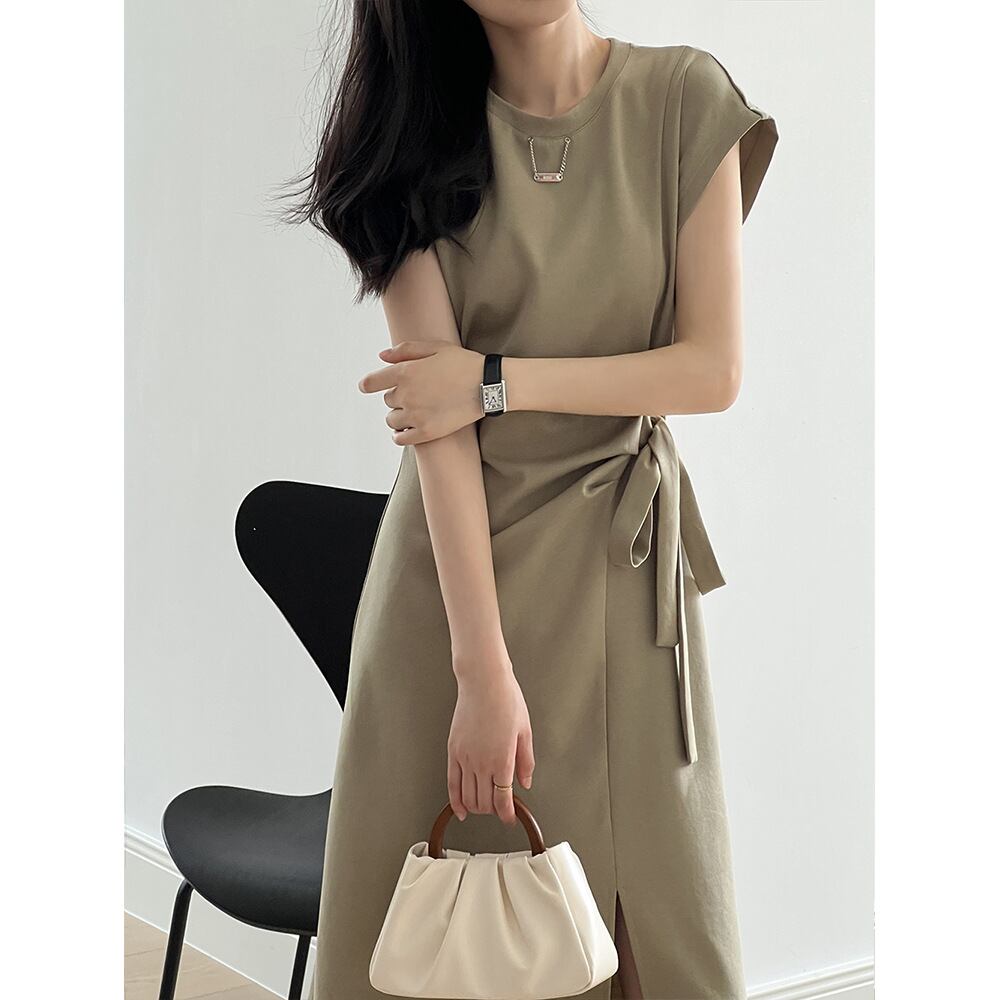 スリットワンピース女性2024夏の新型丸襟の長いスカート313