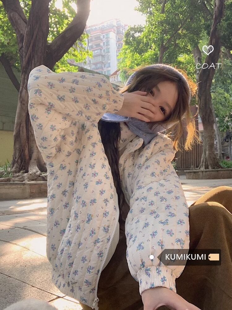 韓国の花柄パッド入りジャケット、スタンドアップカラー、パッド入りジャケット、婦人服、冬、小さい、厚い、暖かいブレッドスーツ、パッド入りジャケット314