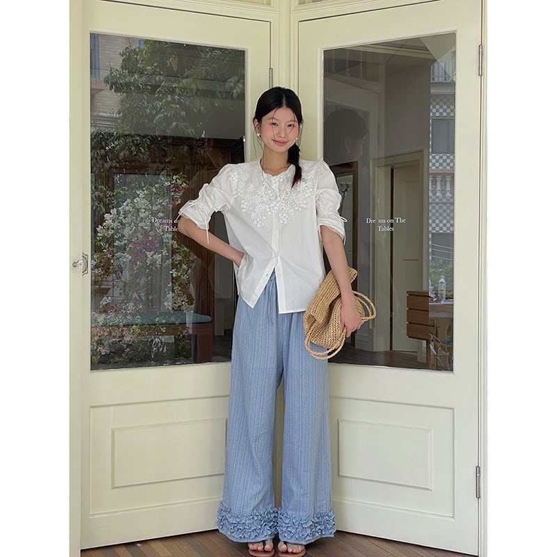 【少女の祈り】フレンチレトロ刺繍襟シャツ夏ラッパ袖ストラップ上着18
