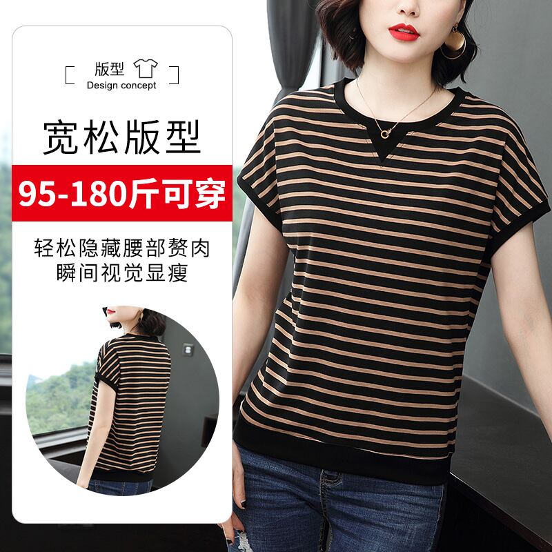女性用ストライプTシャツ、半袖、2025年夏、新作ルーズTシャツ、コットントップ、スモールシャツ、トレンディ331