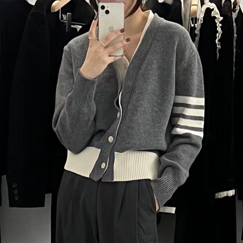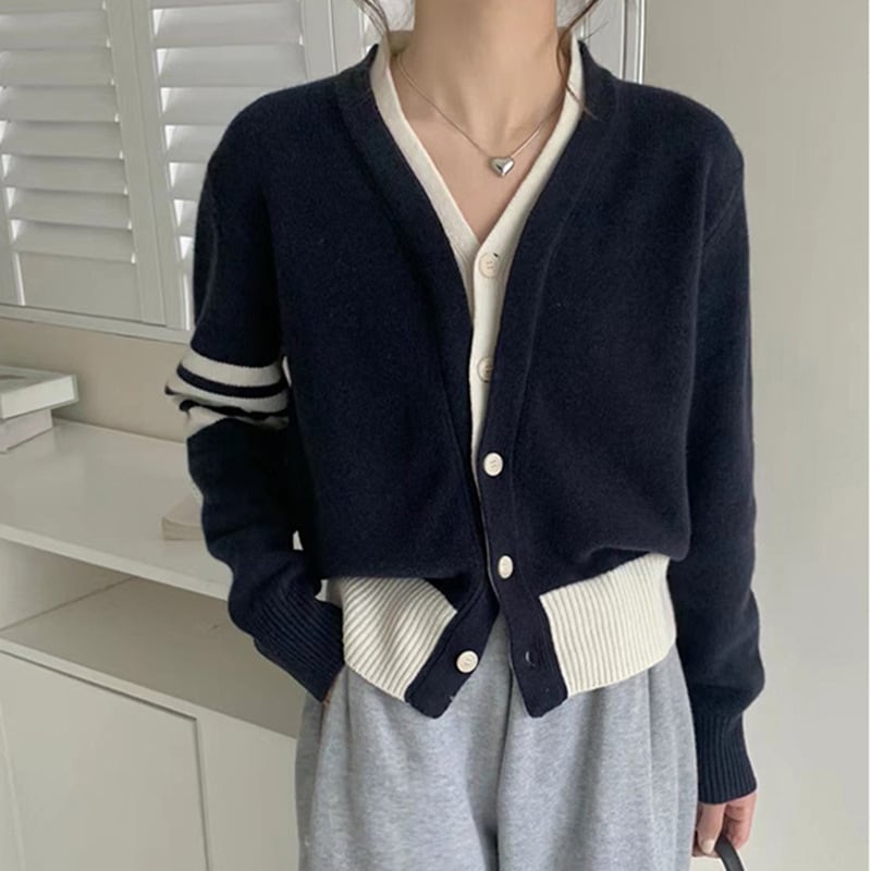 vネックニットのカーディガン秋冬のゆったりしたファッションのセーターのデザイン感の上着3