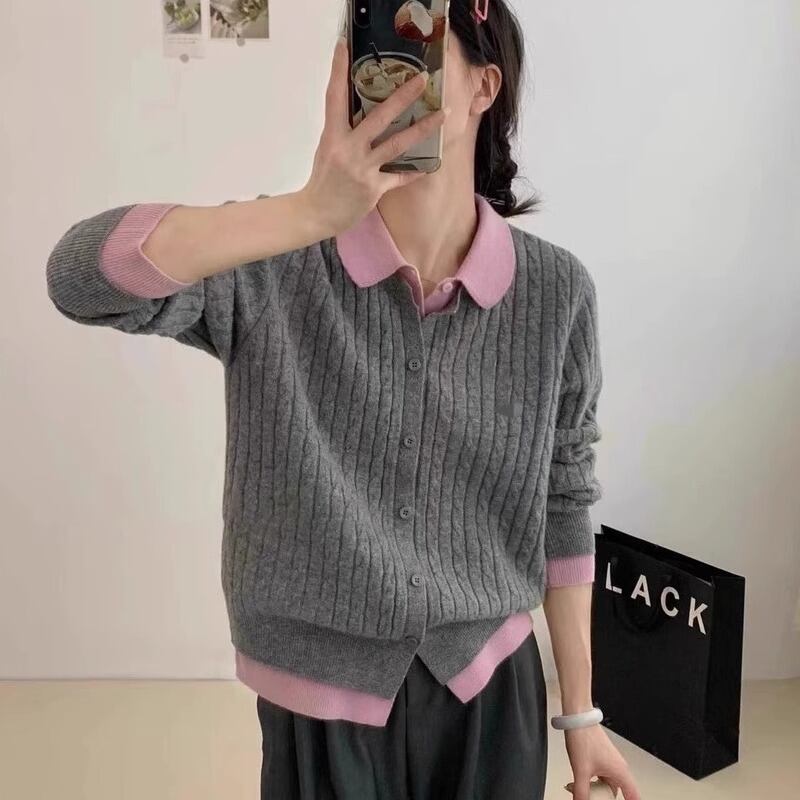 襟セーター女2024年秋の新デザイン2枚ニットカーディガンコート357