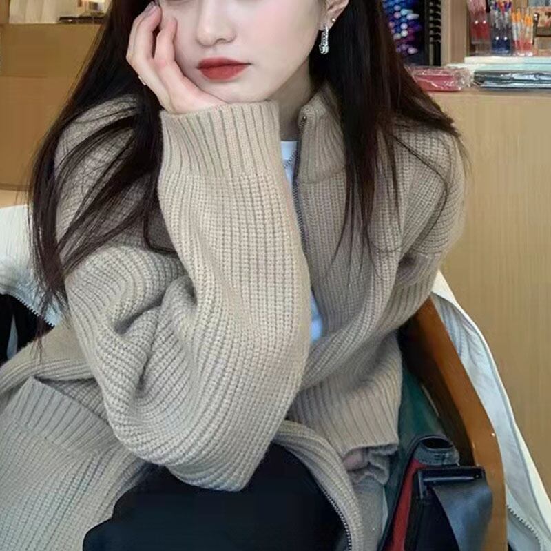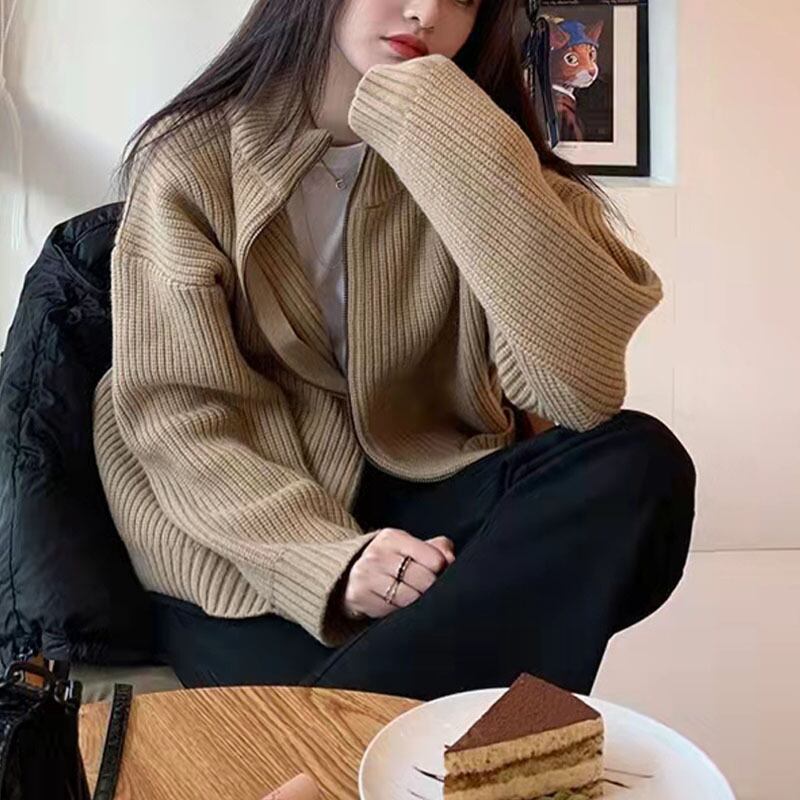 セーター女2023秋冬新作レトロ日系デザイン感純色ファスナーメリヤスカーディガンセーターコート388