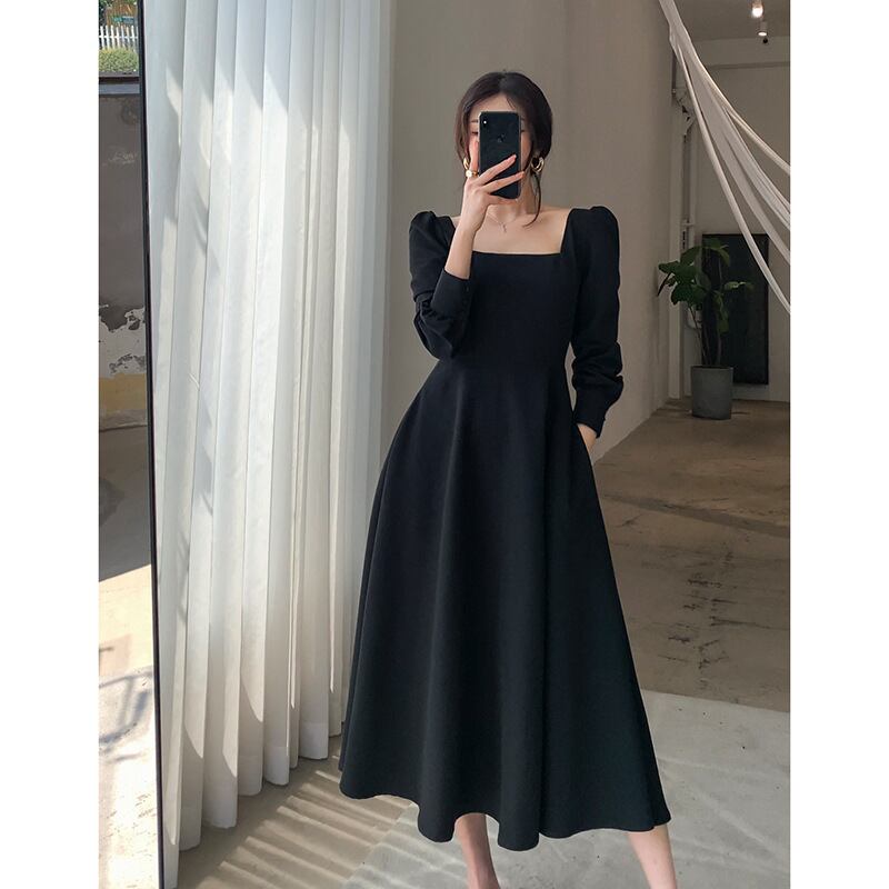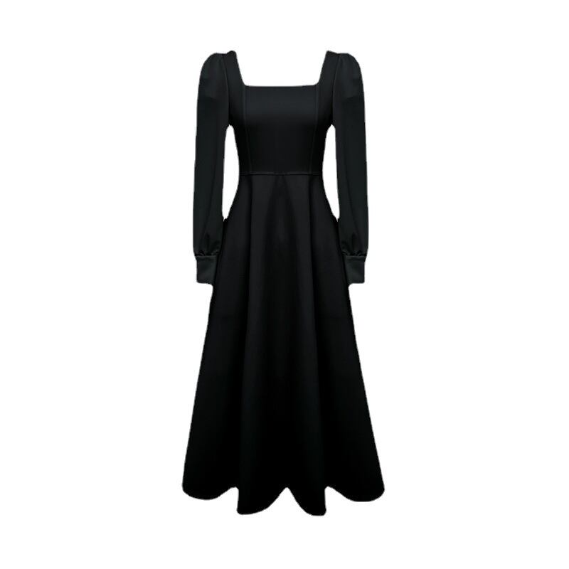 2023年春新作ワンピースレディース長袖フレンチレトロヘップバーン風角襟ウエストスリムロングスカート398