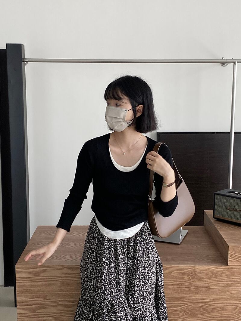 スリムフェイクツーピースウールセーターレディース秋スリム伸縮性インナートップス404