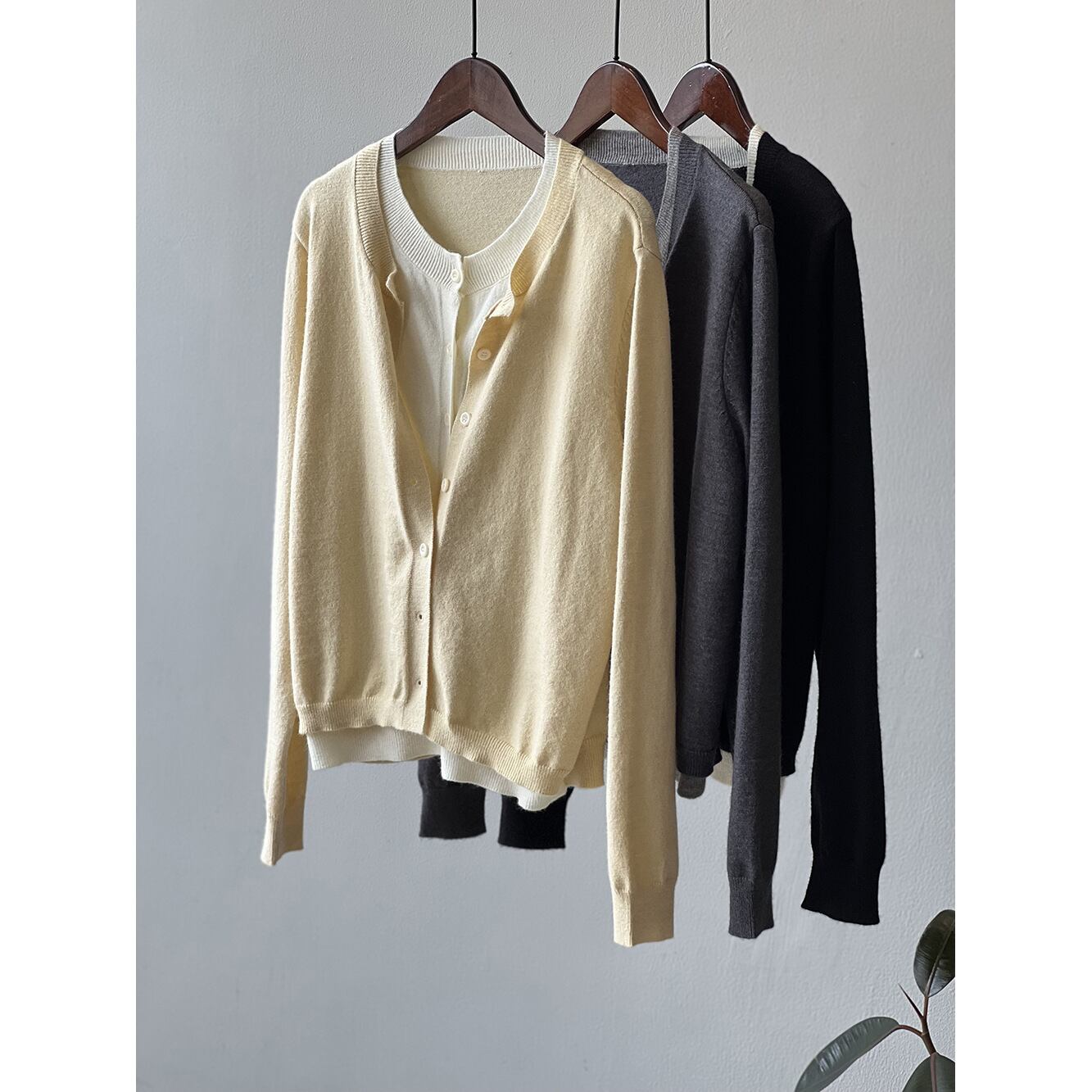 丸襟のニットのカーディガンの女性の2024秋セーターの上着 フリーサイズ419