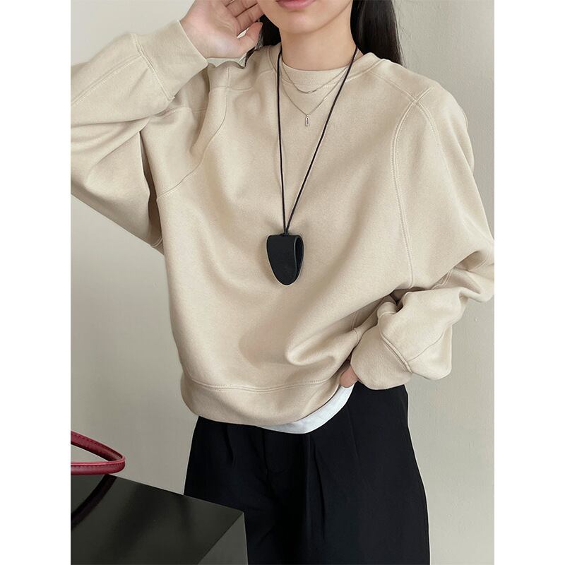 韓系ファッション丸首2024秋ゆったりとした短いカジュアルカバー長袖上着 スウェットシャツ/フリースセーター424