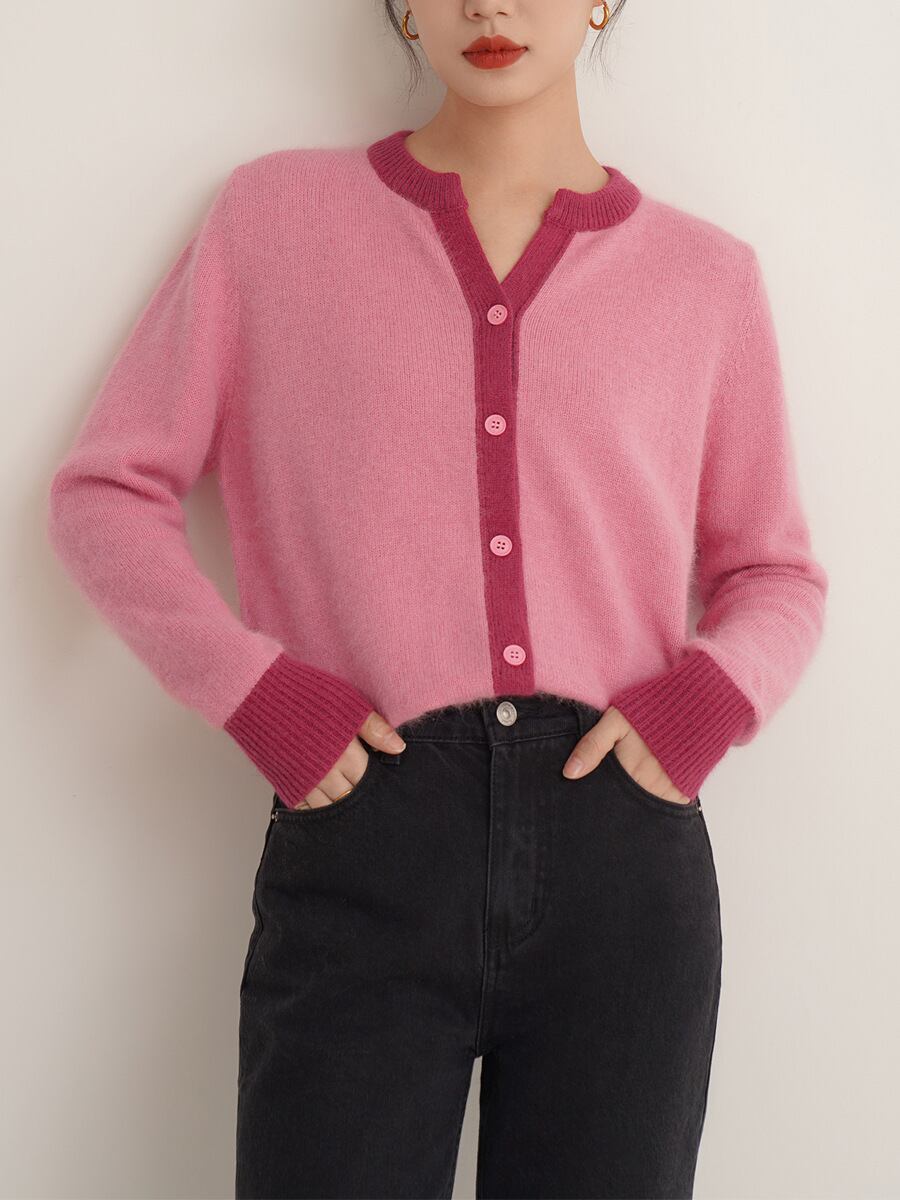 ファーセーターカーディガン レディース 冬デザイン ニッチ Vネック トップ ピンク ソフトワックスニットジャケット433
