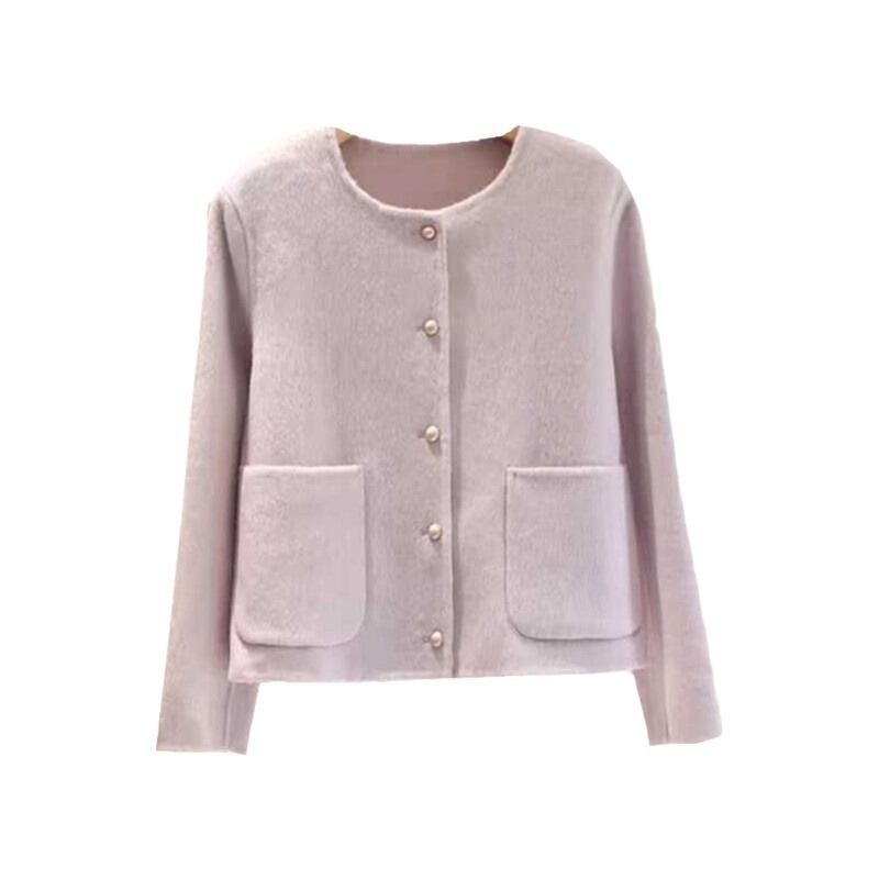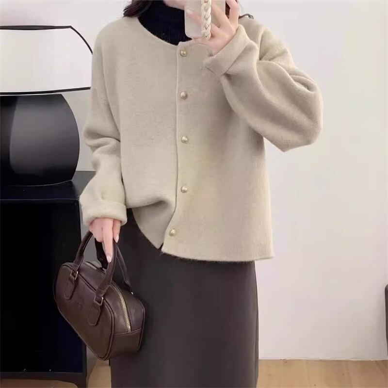 ボタン純色丸首セーターコート女性高級感ファッション韓国版ニットカーディガン 2024年秋461