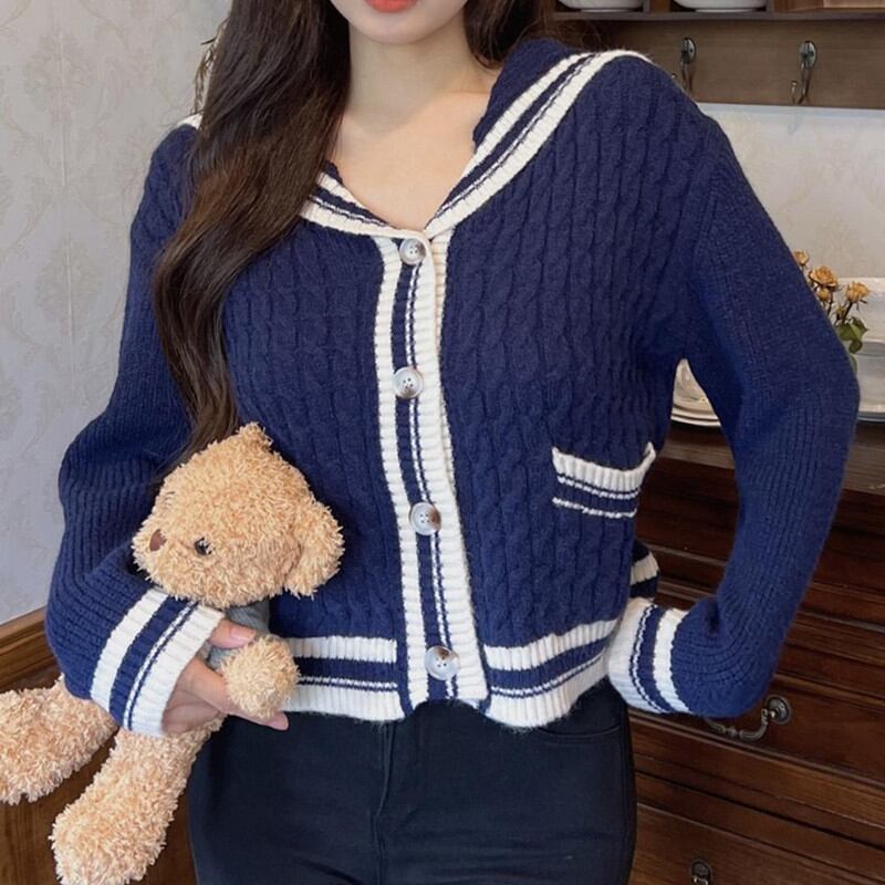 このカーディガンは、レトロな襟とショート丈が特徴で、軽やかでありながらしっかりとした温かさを提供します。秋の肌寒い日々にぴったりなアイテムで、さまざまなスタイルに合わせて楽しむことができるため、あなたのクローゼットに欠かせない一品です。