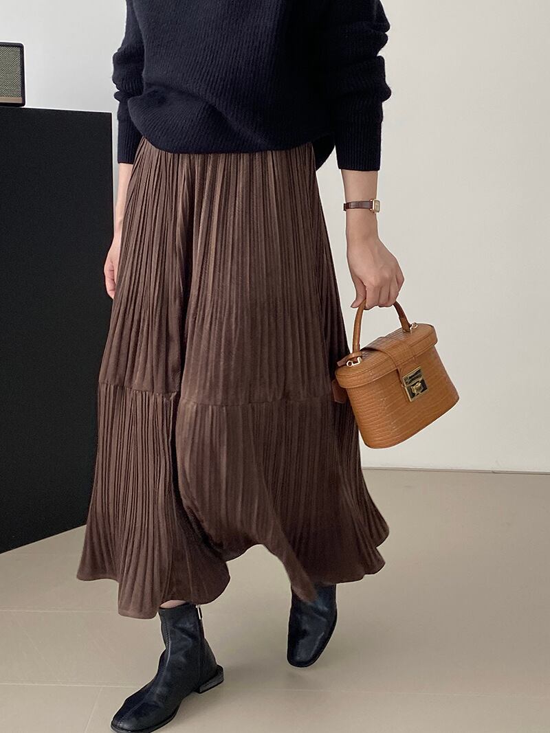 このスカートは、豪華なゴールドベルベット素材を使用しており、温かみのある着心地を実現しています。エレガントなプリーツデザインが特徴で、カジュアルなお出かけから特別なシーンまで幅広く活躍し、あなたのスタイルを引き立ててくれることでしょう!ぜひこのアイテムを秋冬のファッションに取り入れてお楽しみください。