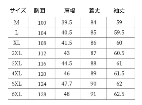 ・サイズはMから6XLまで展開しており、さまざまな体型にフィットします。