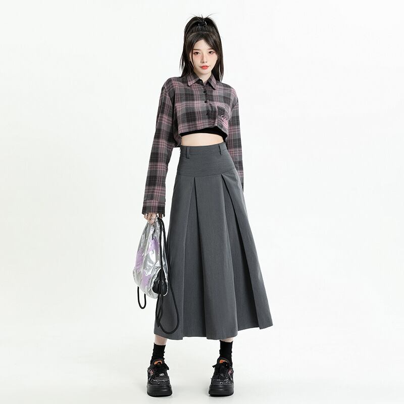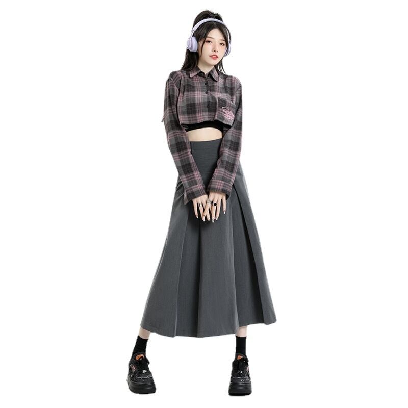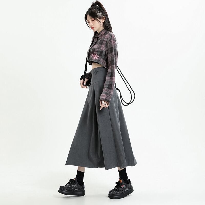グレーのスーツのスカートの女性2023年の春の新型のハイウエストはゆったり528