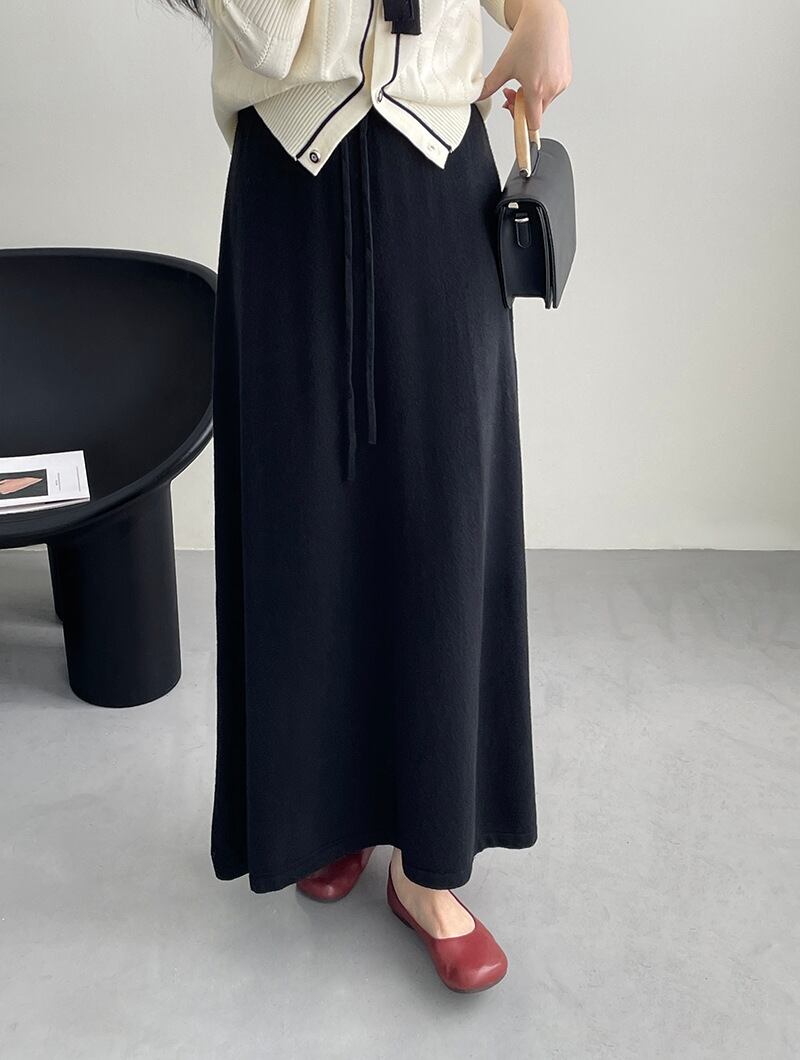 ソリッドカラーニットスカートレディース秋冬多目的ドローストリング Aラインスカートロングスカート540