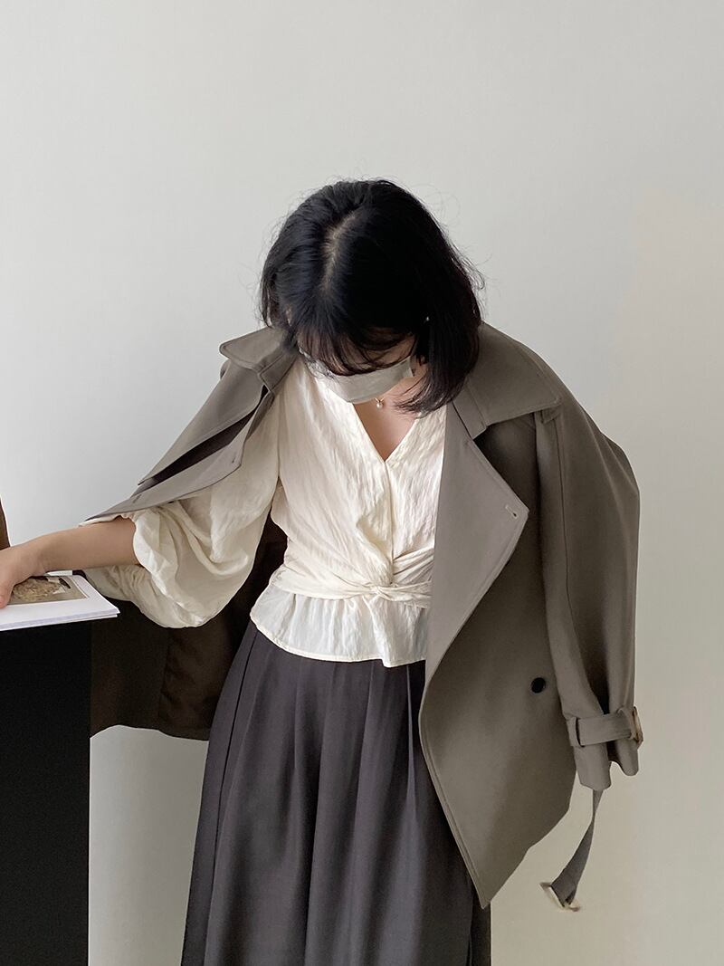 ツイストウエストランタンスリーブシャツレディース 2023 秋新作 Vネックフレンチシャツ547