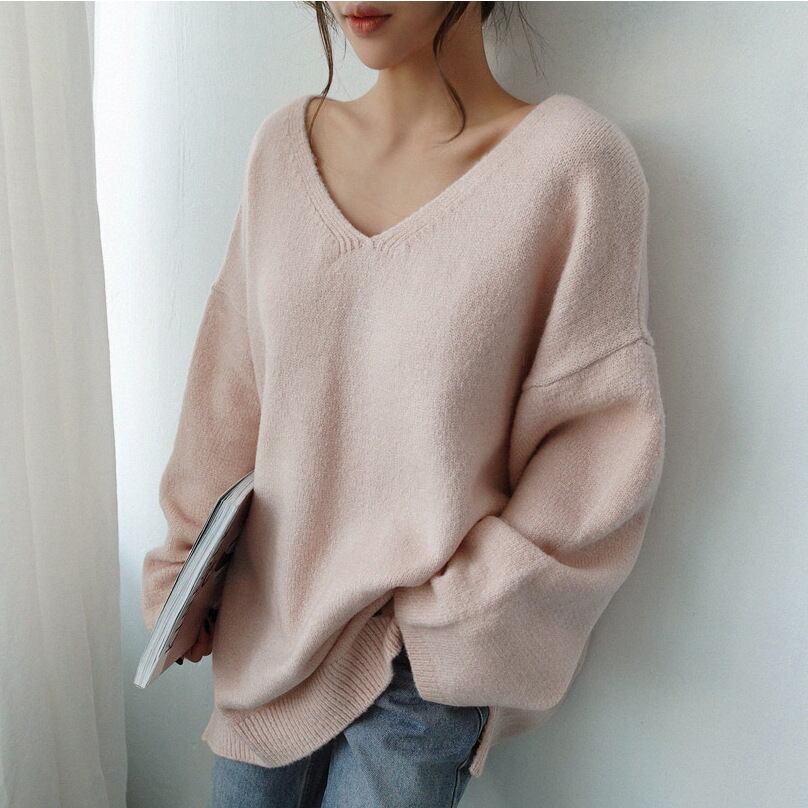 秋冬の洋風vネックのニットのシャツ549