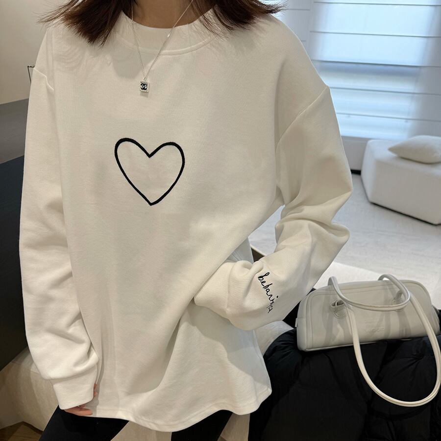 ハートの刺繍シャツ長袖のTシャツ2024冬の新型カジュアルな上着558