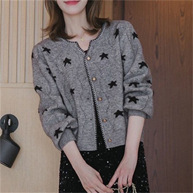 2024秋の新型vネックの色合わせ韓国版、ニットのカーディガンのボタンの柔らかいモチモチのセーター560