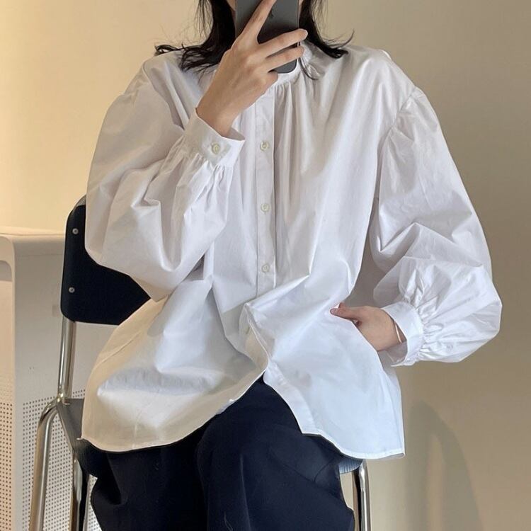 春夏新作韓国ランタンスリーブルーズカジュアル無地シャツ長袖和風563