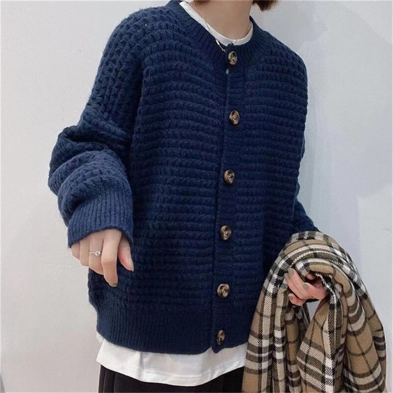 セーターの女性の秋冬2022年の新型の丸首のゆったりニットのカーディガン575