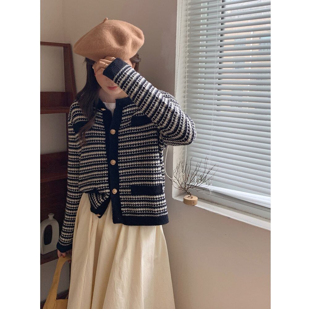 新型2023秋フランス式女性ニットセーター長袖カーディガンコートr588