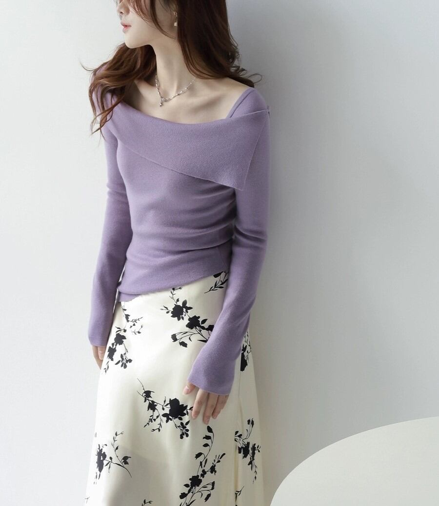 デザインカーディガン秋新作ワンショルダーデザイントップスレディースフレンチゆったり長袖セーター589
