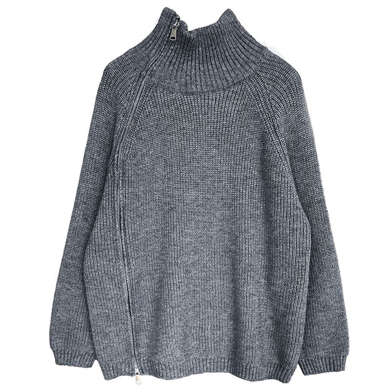 ダブルヘッド斜めジッパー高襟セーター女装秋冬カジュアルニット602