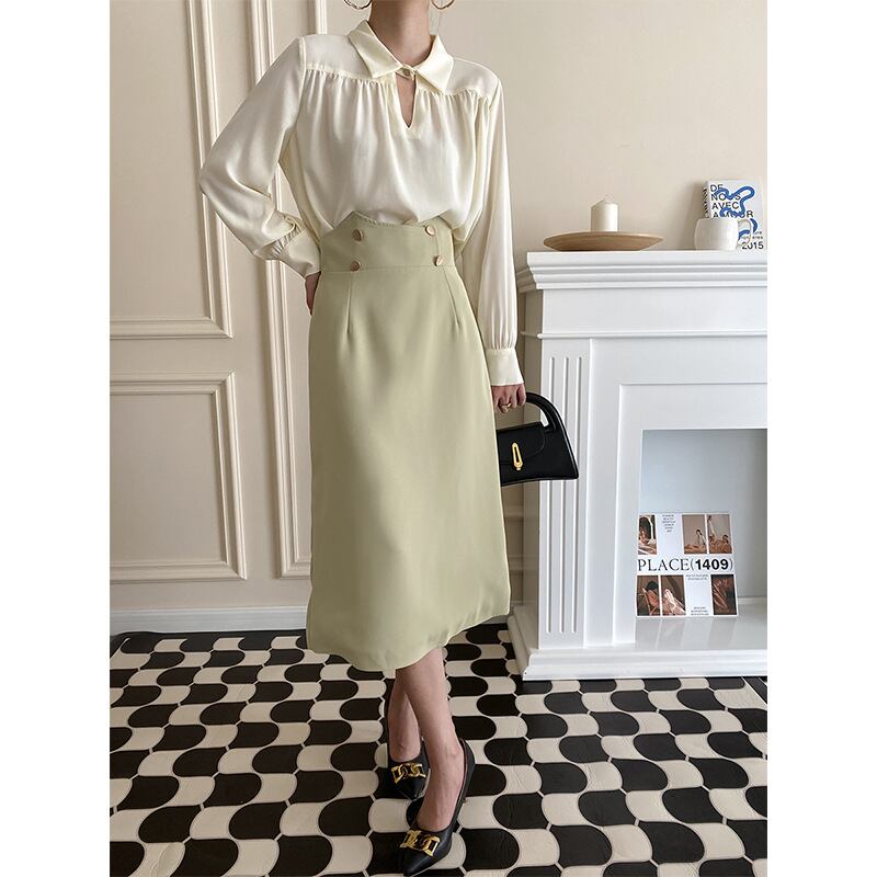 通勤不規則高腰スーツ半身スカートミディアムロング2023年秋新作634