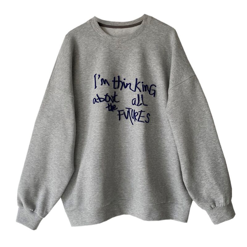 刺繍のアルファベットの女性の韓国系のゆったりカジュアルな長袖の丸首は上着の秋646