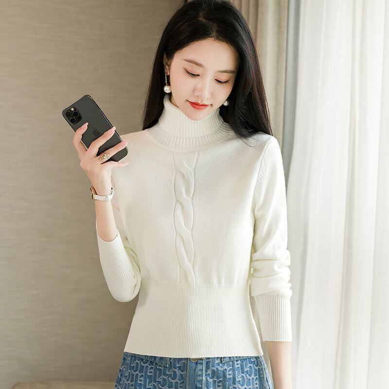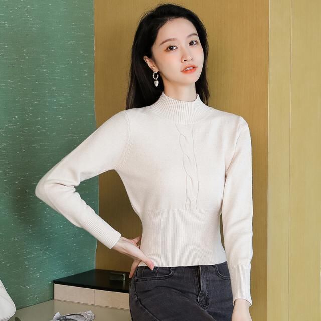 スモールウエストショートセーターレディース長袖厚手インナーウェア 2023春秋暖かいハーフハイネックニットトップ655