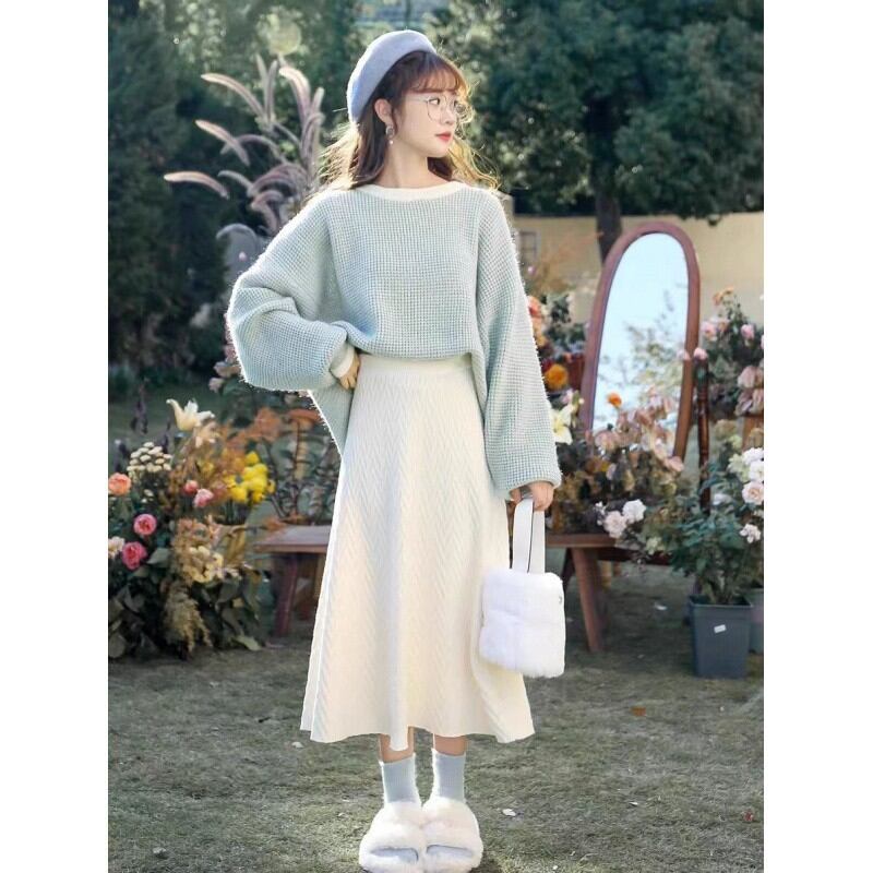 2024秋冬新作韓国版ミディアムロングニット半身スカートゆったりファッションハイウエストA字ロングスカートレディース686