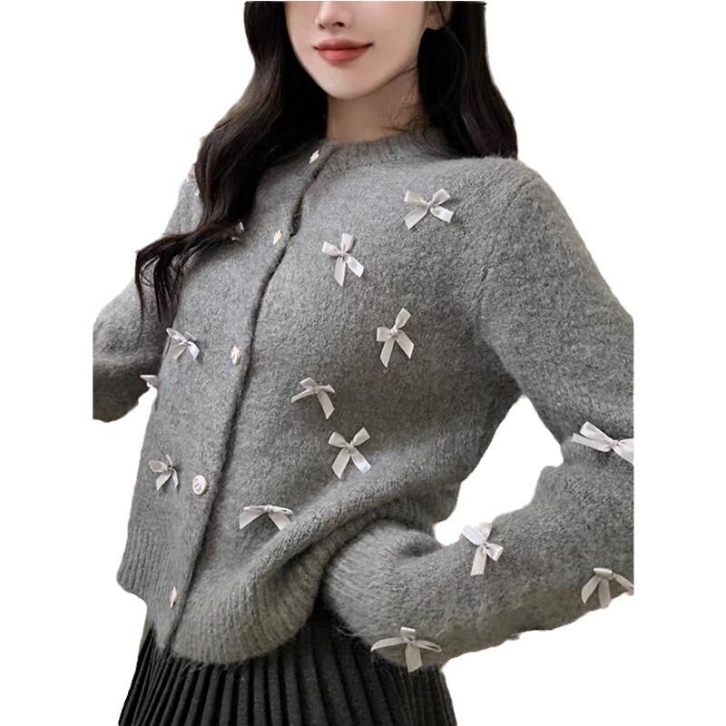 2024春の新型韓国版ゆるい蝶結びニットカーディガン女性のデザイン感が甘い柔らかいモチモチのセーター689