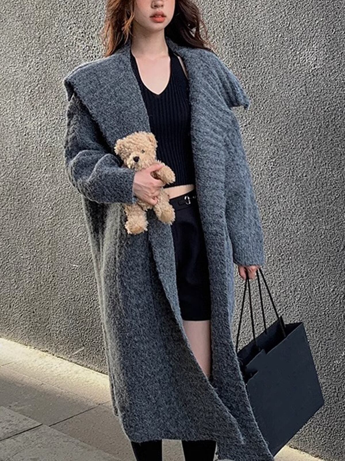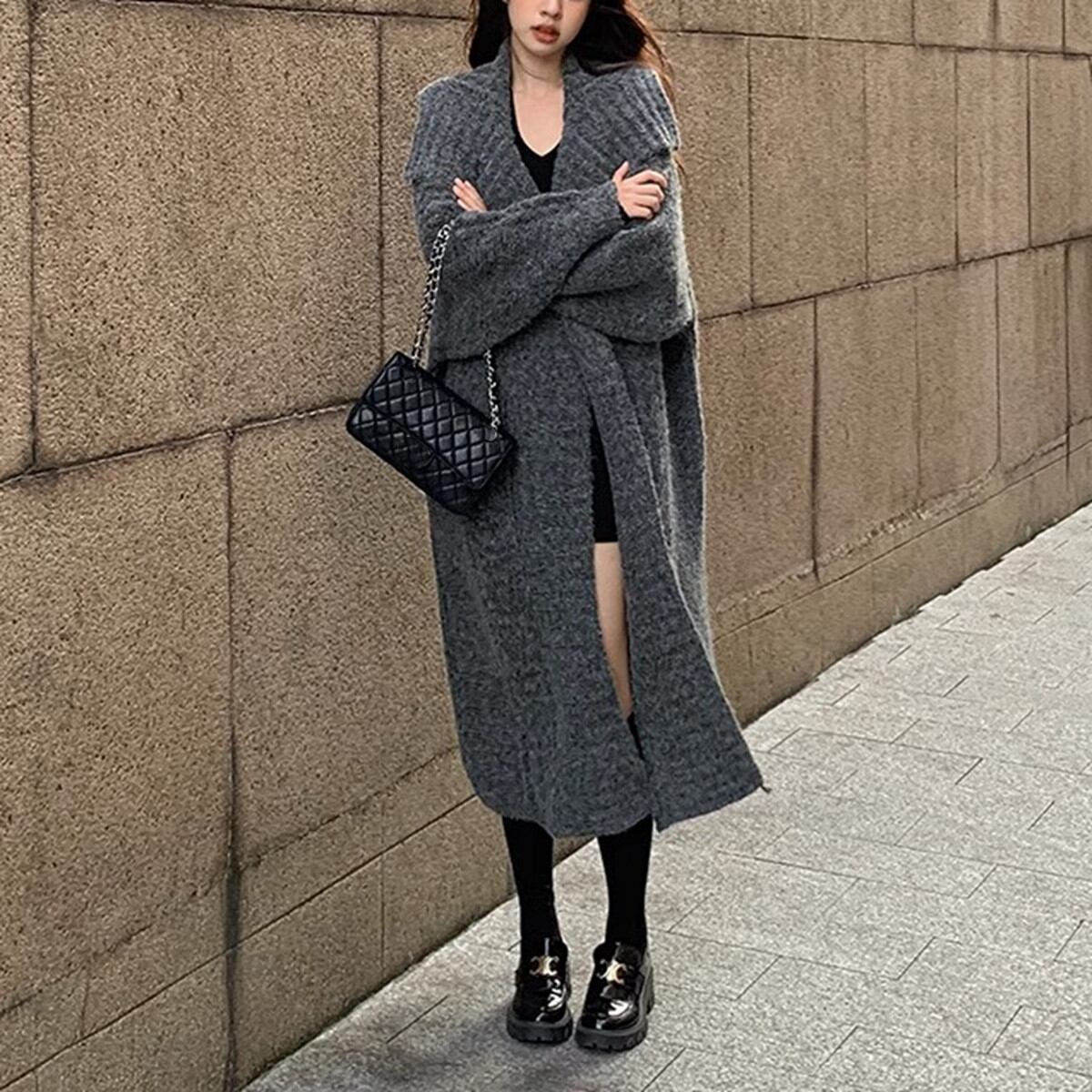 フレンチレトロラペルロングセーターレディース 2023年秋冬新作ニットカーディガンルーズリラックススタイルニットジャケット697