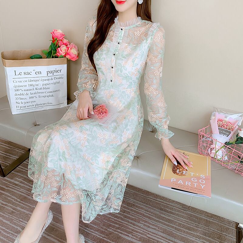 刺繍ワンピース女性長袖春装2023新型スカート717